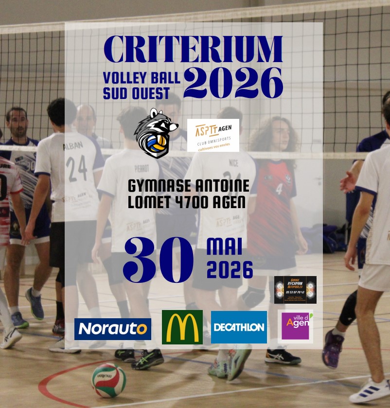 Inscriptions ouvertes pour le Criterium de Volley Ball du Grand Sud Ouest le 30 mai 2026 à Agen