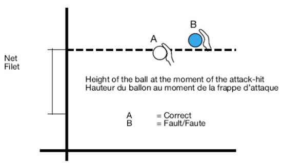- les fautes de filet et de pénétration (en priorité côté bloc mais il peut aussi siffler côté attaque si le 1er arbitre ne les voit pas),